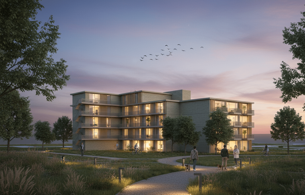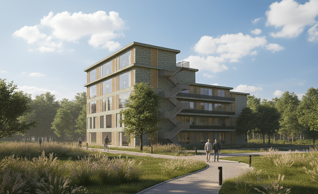 Het eindresultaat is een duurzaam appartementencomplex waarin architectuur, woonkwaliteit en energiezuinig bouwen samenkomen.